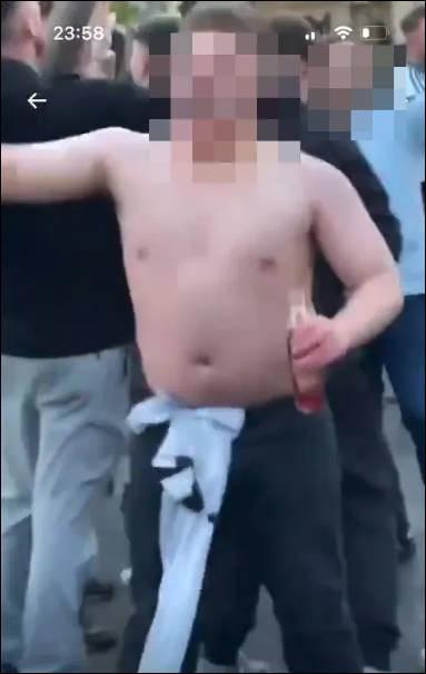 在厕所的视频中,该男子全裸出现,而在第二个视频中,他穿着黑白相间的纽卡球衣,随后,他似乎在体育场外的广场上赤裸上身拿着饮料跳舞。
